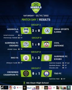 Hammola FC so far have recorded two wins so far with their second coming on Saturday when they defeated OKAA Sports Ilorin 2-0.